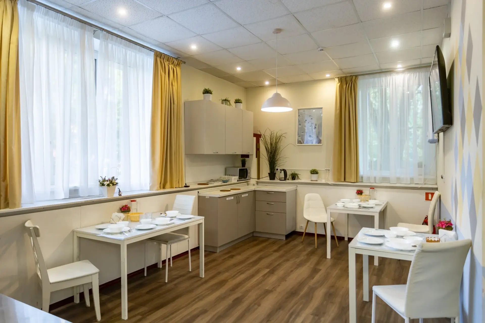 Развитие сети пансионатов «Опека» - один из способов решения этой психологической проблемы, ведь для проживающих тут ее просто не существует. Один из самых новых в сети «Опека» — пансионат «Леснозаводской» расположен в невероятно романтичном месте - прямо у набережной Невы, рядом с парком «Куракина дача». Современное здание, просторные комнаты для проживания, оригинальная по планировке и дизайнерскому оформлению столовая — все это создает впечатление, что находишься в настоящем отеле. С той лишь разницей, что окружают тебя не случайные соседи, а хорошо знакомые люди, с которыми всегда можно пообщаться на любые волнующие темы, быть услышанным и понятым. А ведь это так важно для любого пожилого человека!